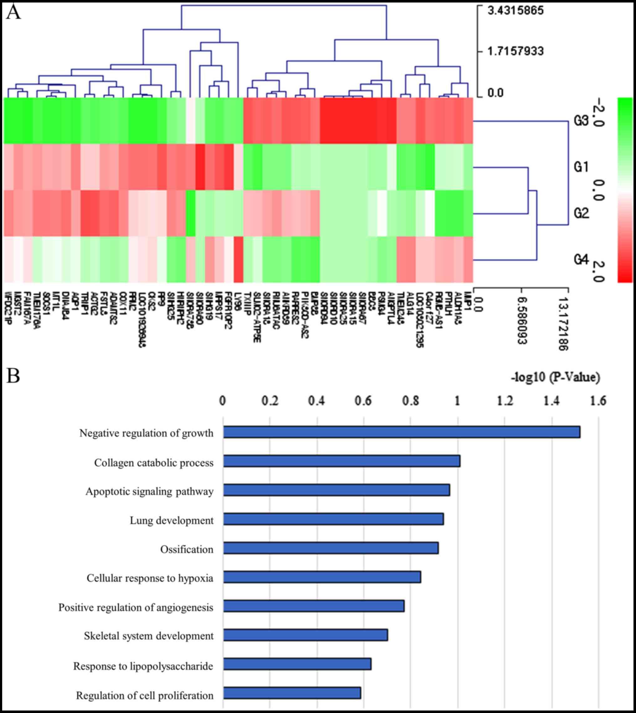 Differentially expressed mRNAs in the 10 ng/ml group vs. the control group (fold change >1.5 and log2 normalized data >3 were selected).