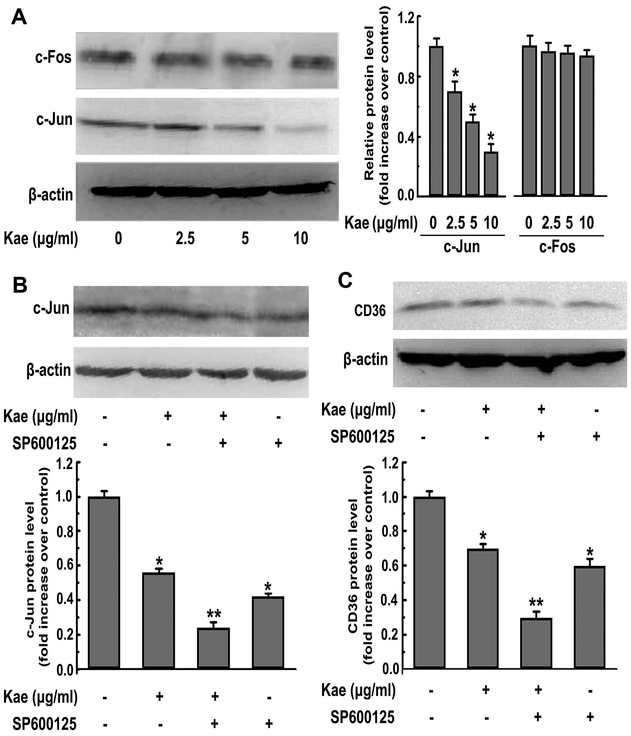Kaempferol-induced CD36 inhibition is mediated by the c-Jun-AP-1 pathway
