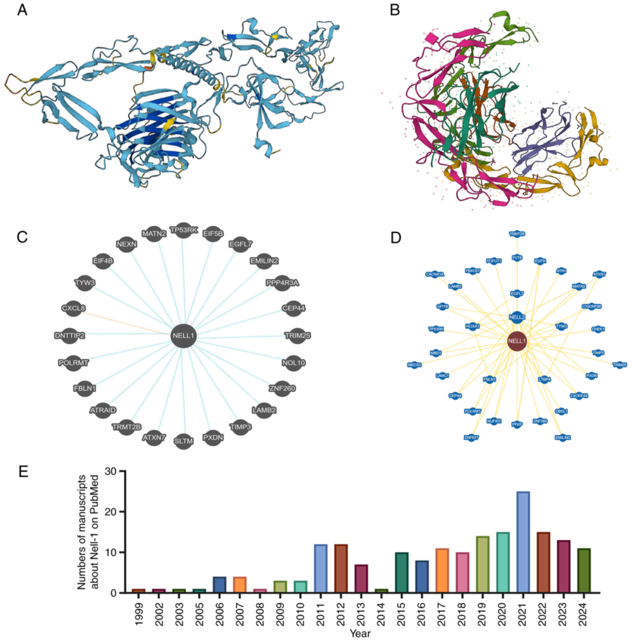 Li C, Zhang X, Zheng Z, Nguyen A, Ting K and Soo C: Nell-1 is a key functional modulator in osteochondrogenesis and beyond. J Dent Res. 98:1458–1468. 2019. View Article : Google Scholar : PubMed/NCBI | |