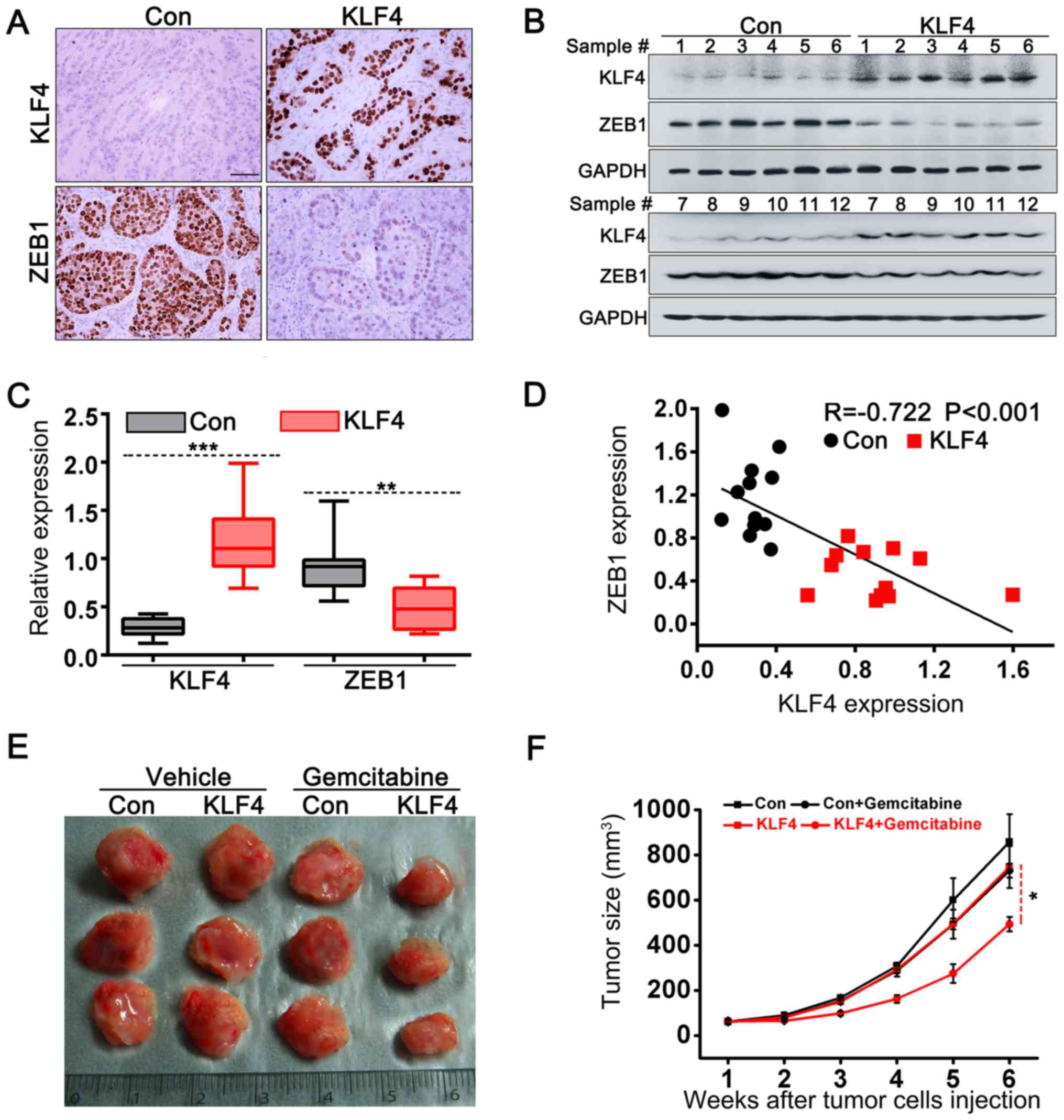Negative association between KLF4 and ZEB1 regulates gemcitabine resistance of PDAC in vivo