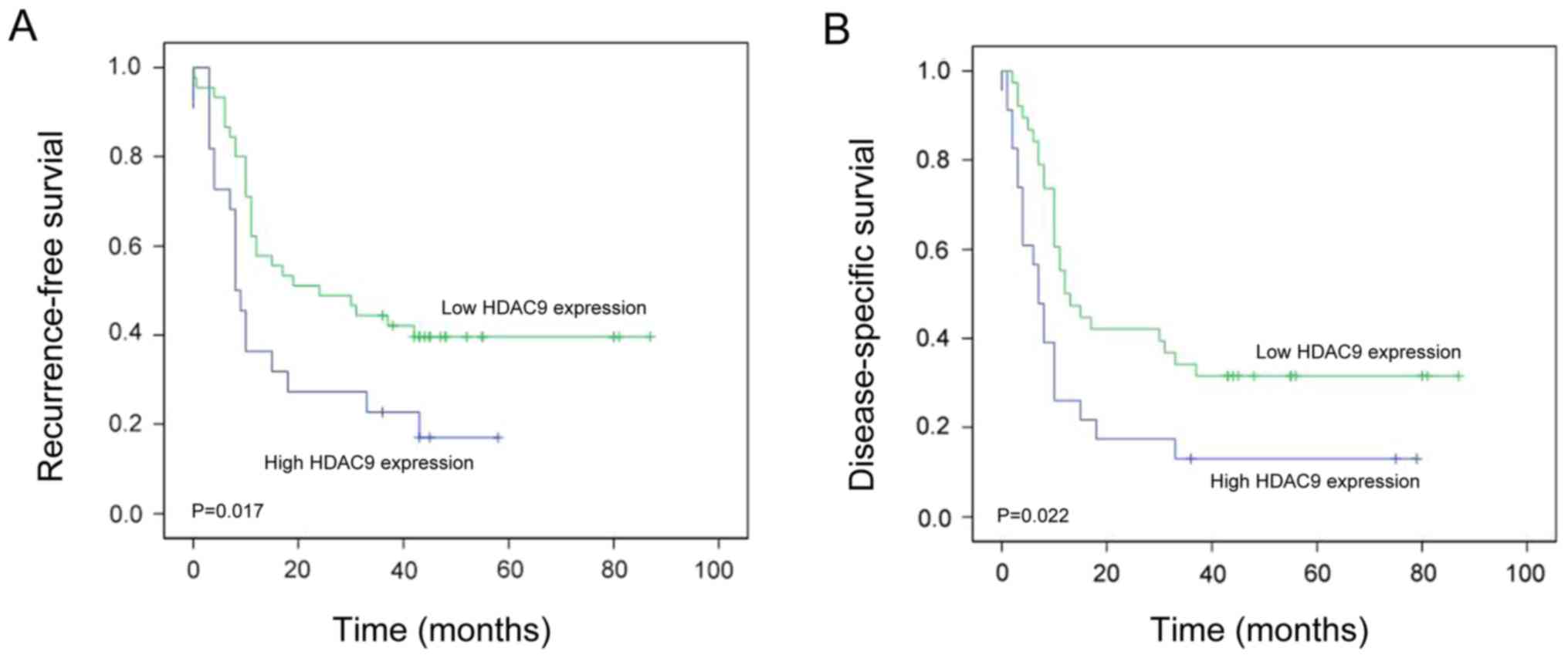 ![]() | Table I.Association of HDAC9 expression with clinicopathological features of pancreatic ductal adenocarcinoma. |