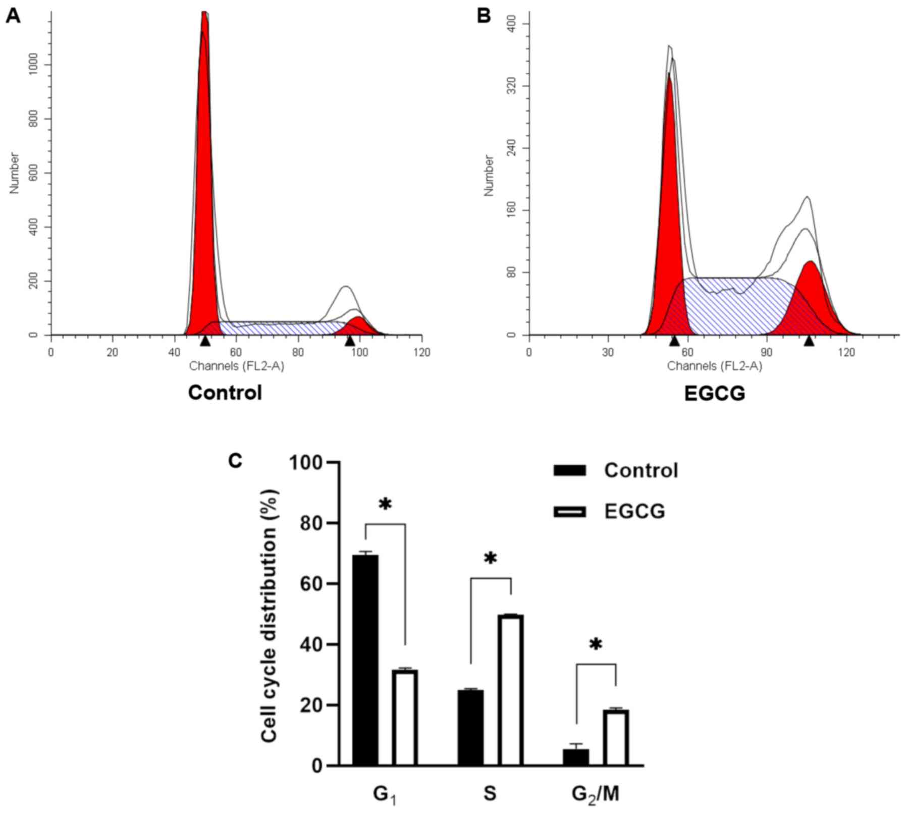 through EGF receptor binding by (−)-epigallocatechin gallate in