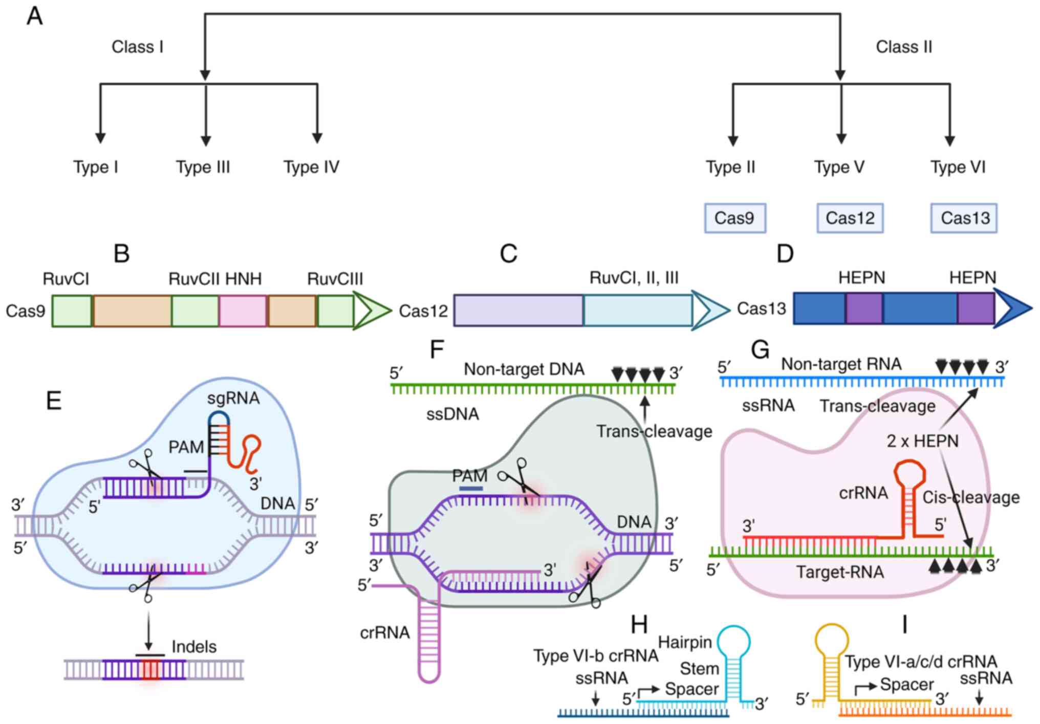 Chen JS, Ma E, Harrington LB, Da Costa M, Tian X, Palefsky JM and Doudna JA: CRISPR-Cas12a target binding unleashes indiscriminate single-stranded DNase activity. Science. 360:436–439. 2018. View Article : Google Scholar : PubMed/NCBI | |