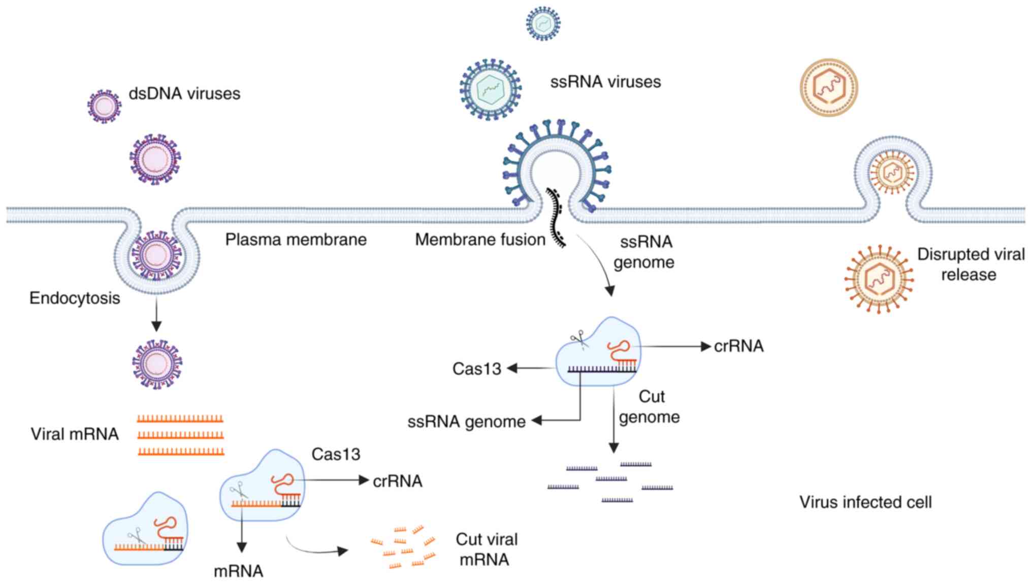 Abbott TR, Dhamdhere G, Liu Y, Lin X, Goudy L, Zeng L, Chemparathy A, Chmura S, Heaton NS, Debs R, et al: Development of CRISPR as an antiviral strategy to combat SARS-CoV-2 and influenza. Cell. 181:865–876. e8122020. View Article : Google Scholar : PubMed/NCBI | |