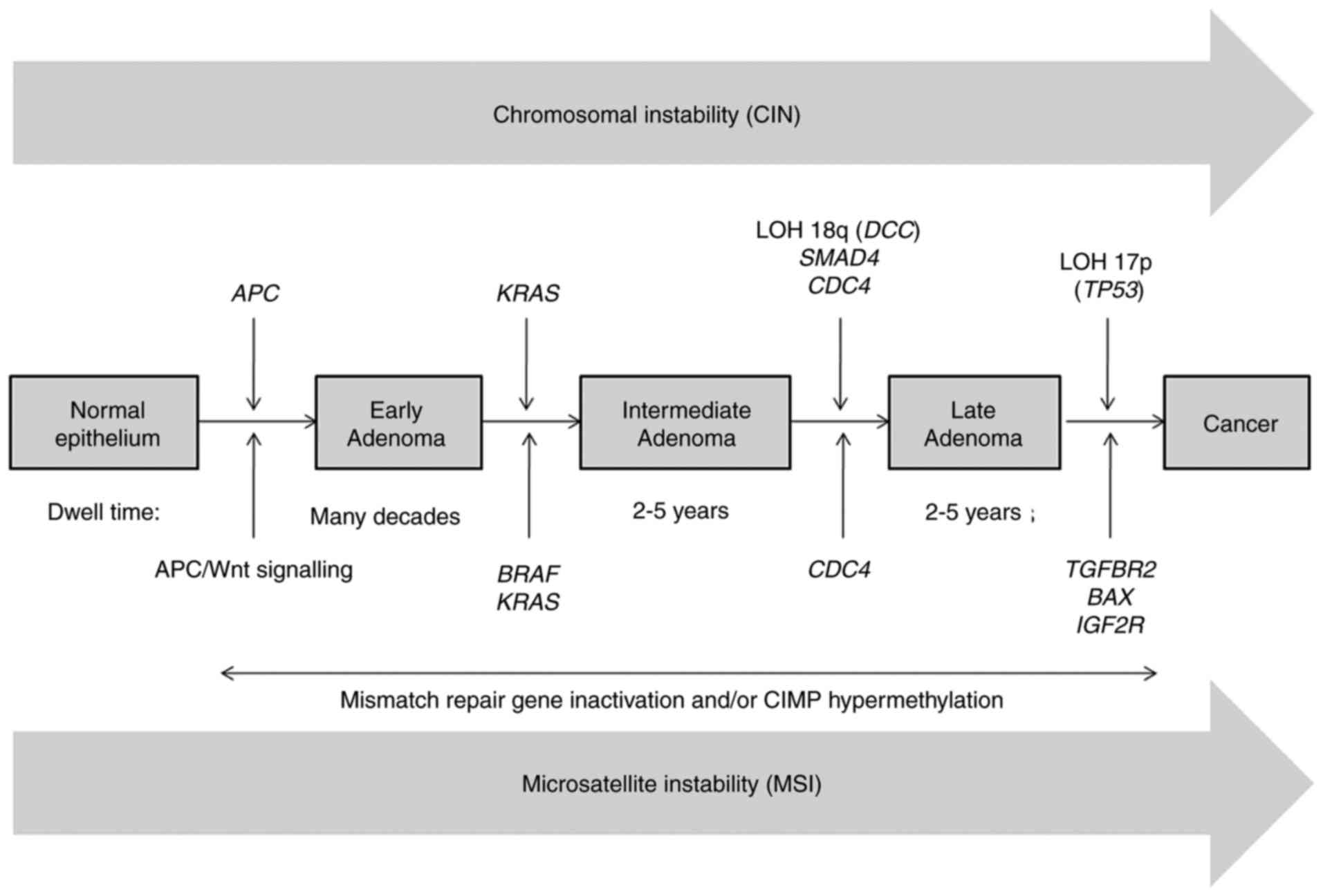 Fearon ER and Vogelstein B: A genetic model for colorectal tumorigenesis. Cell. 61:759–767. 1990. View Article : Google Scholar : PubMed/NCBI