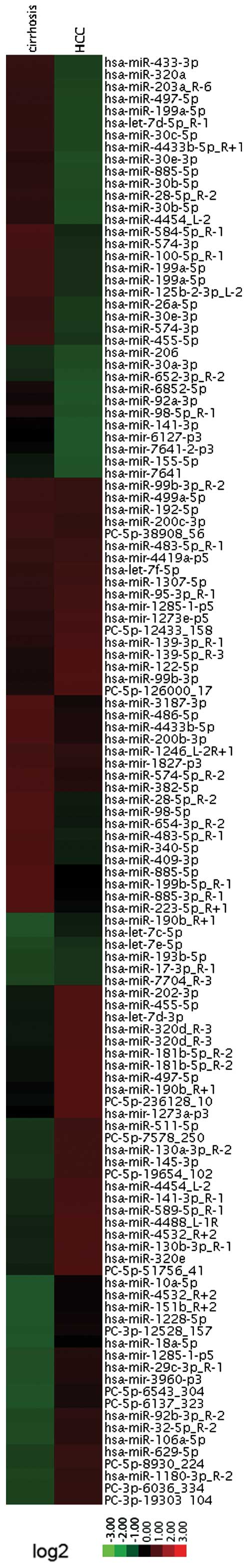 of microRNA expression in hepatocellular carcinomas with hepatitis